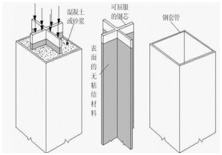 由于泊松效應(yīng)的存在,芯材受壓時(shí)會(huì)發(fā)生膨脹,故在芯材和填充料(砂漿、配方混凝土等)之間設(shè)置有一層無粘結(jié)材料或非常狹小的空氣層,可以減小或消除芯材承受軸向力時(shí)傳遞給填充料(砂漿或混凝土)和外套管的力,也即外圍約束機(jī)制是不承受軸向荷載作用。